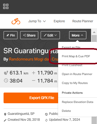 Se preferir, a carta de rota em PDF gerada pelo ride pode ser baixada na própria rota conforme instrução abaixo: